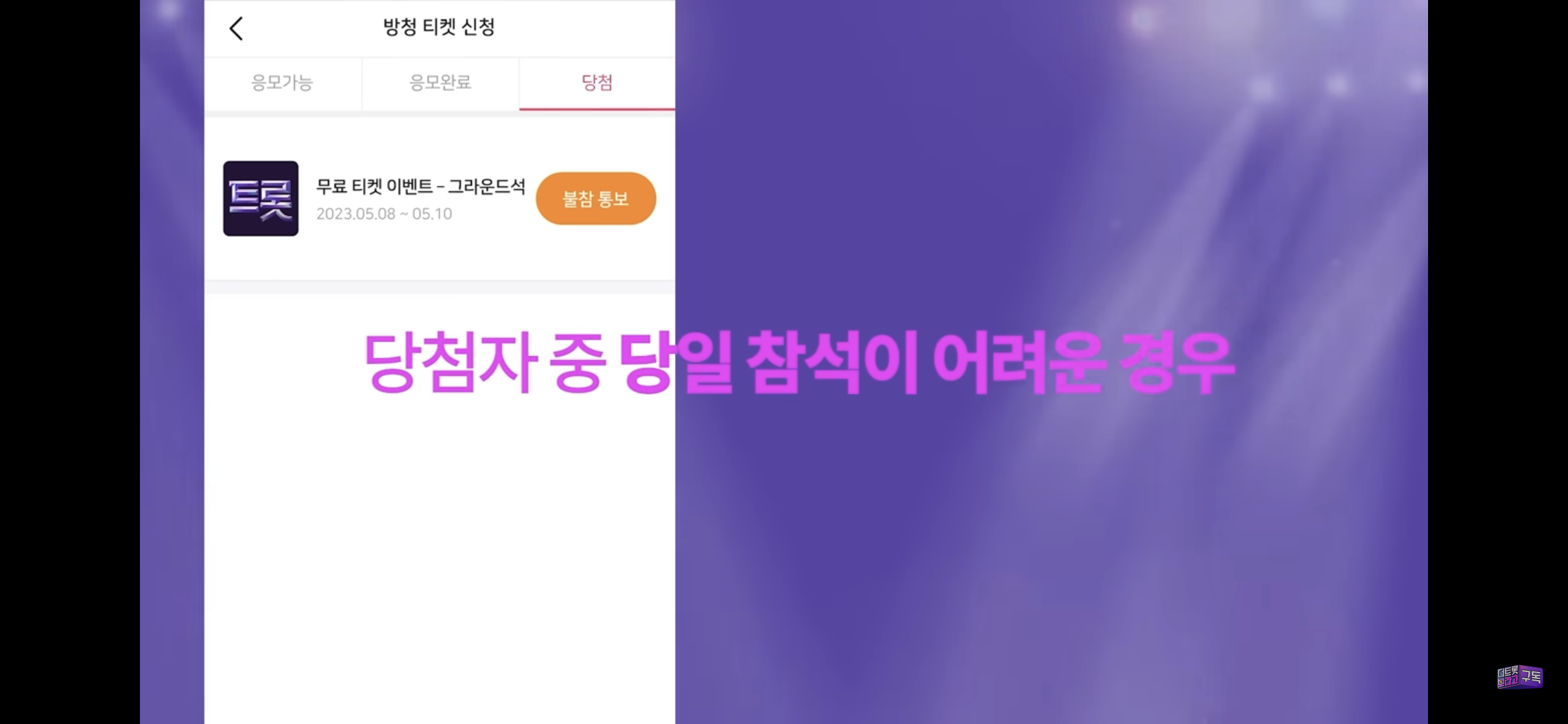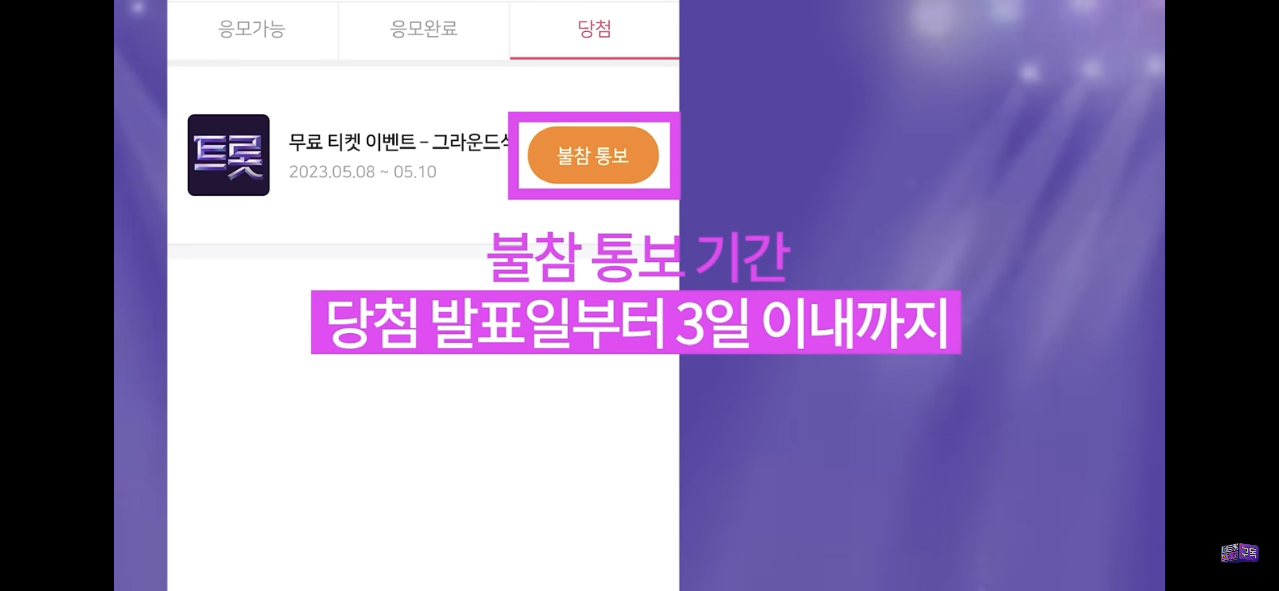 불참 통보 버튼을 누른 티켓은 미당첨자에게 당첨 기회를 줍니다